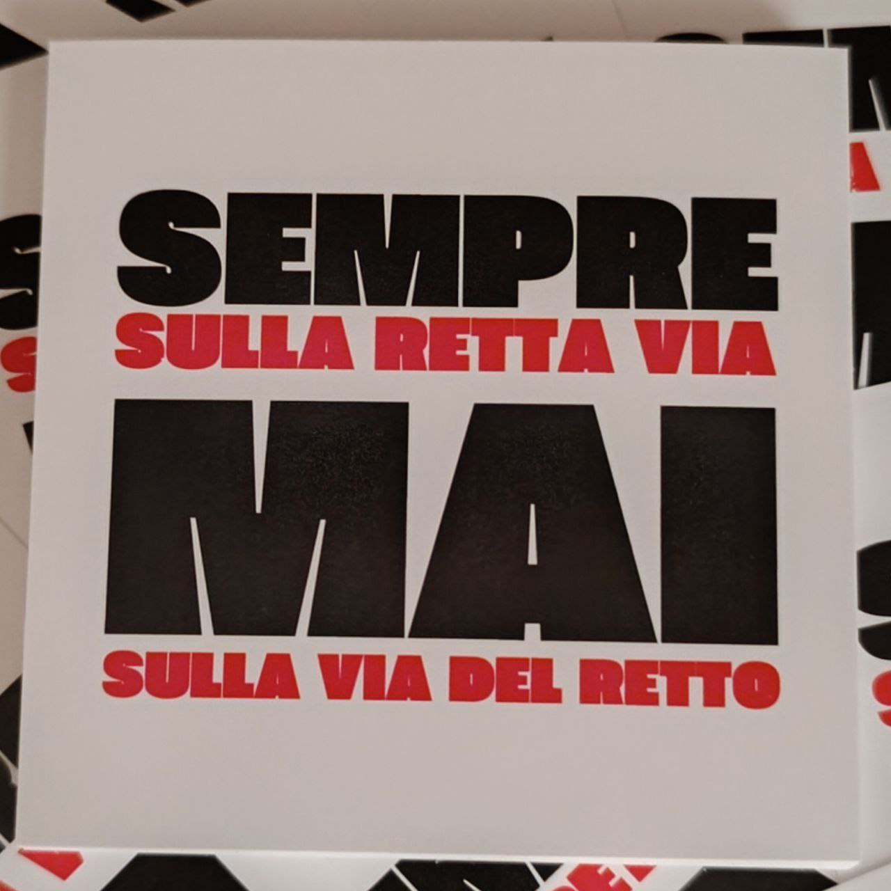 8 grafiche: CARISIO, SANTINO, QUALE SCITTA, DISGRAZIATISSIME SCURO, DISGRAZIATISSIME ROSA, COMANDANTE CRVX, MOLTO TEMPO LIBERO, CATERINO